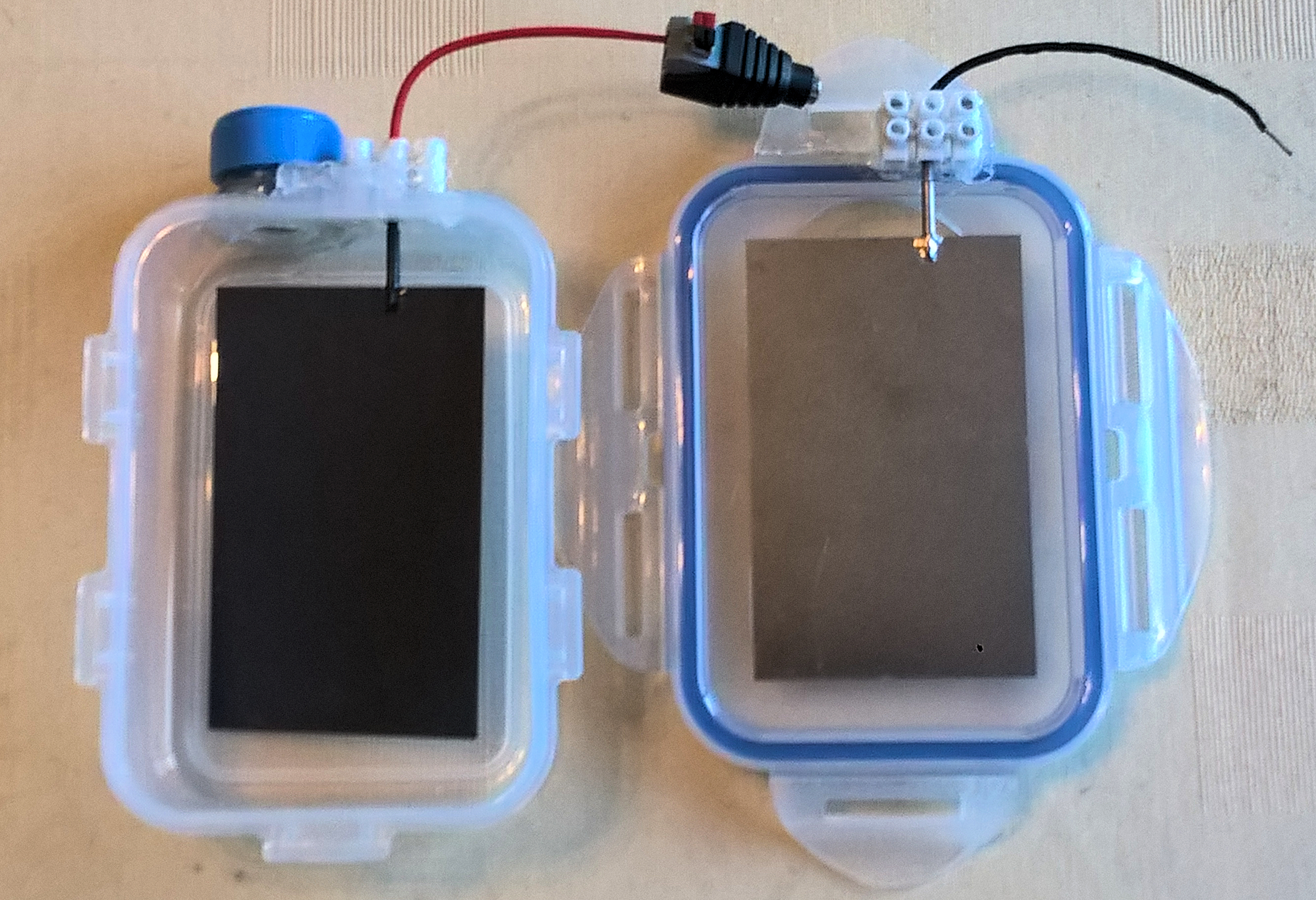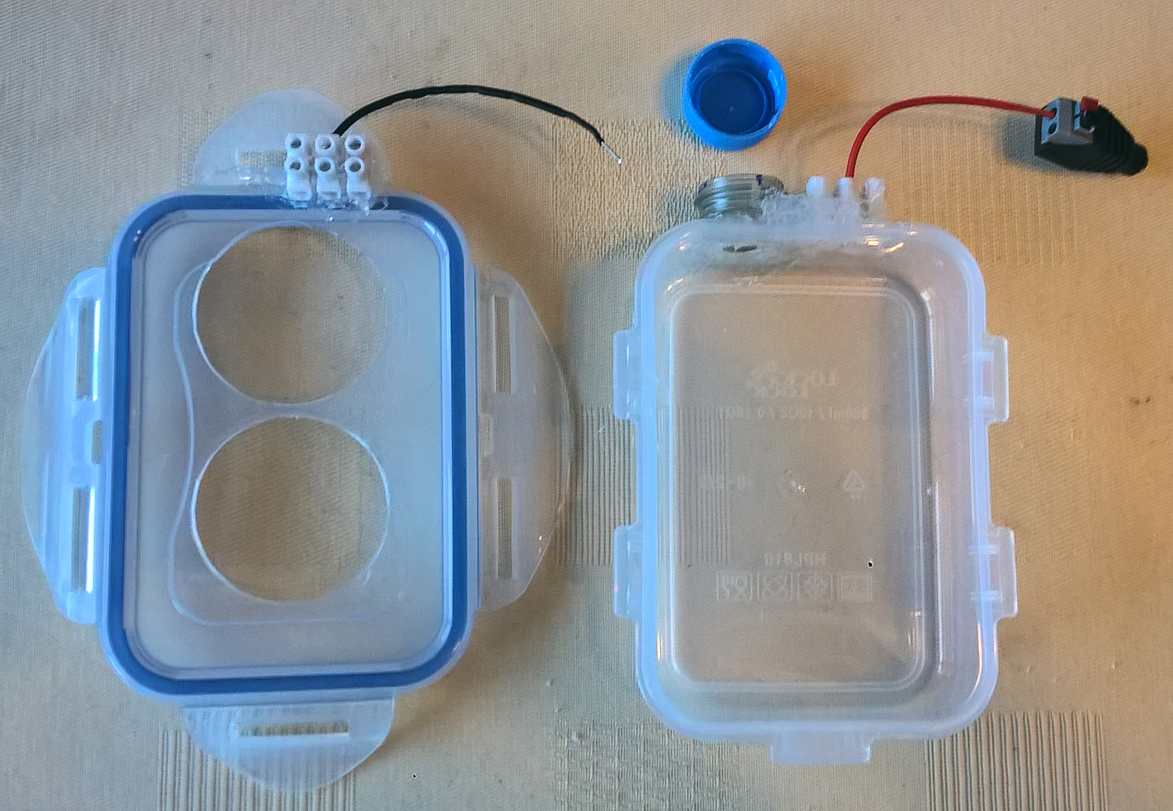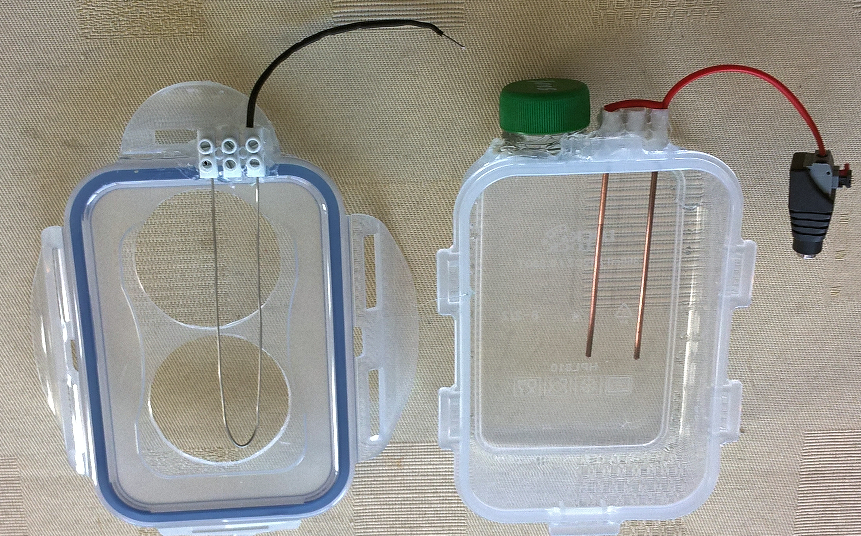 - Die kleine 360 ml-Dose mit den Elektroden in eine größere 1,3 Lock&Lockdose stellen.