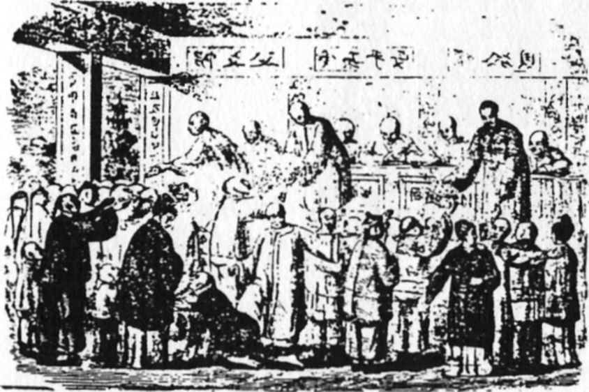 In den heiligen Schriften des Buddhismus findet man eine ausführliche Beschreibung über die Leiden im Fegefeuer. Es gab Zeiten, in denen so viele der chinesischen Buddhisten kamen, um Gebete für die Errettung der ihnen Nahestehenden aus dem Fegefeuer zu kaufen, daß für diesen Zweck besondere Geschäfte eröffnet wurden (siehe Zeichnung).