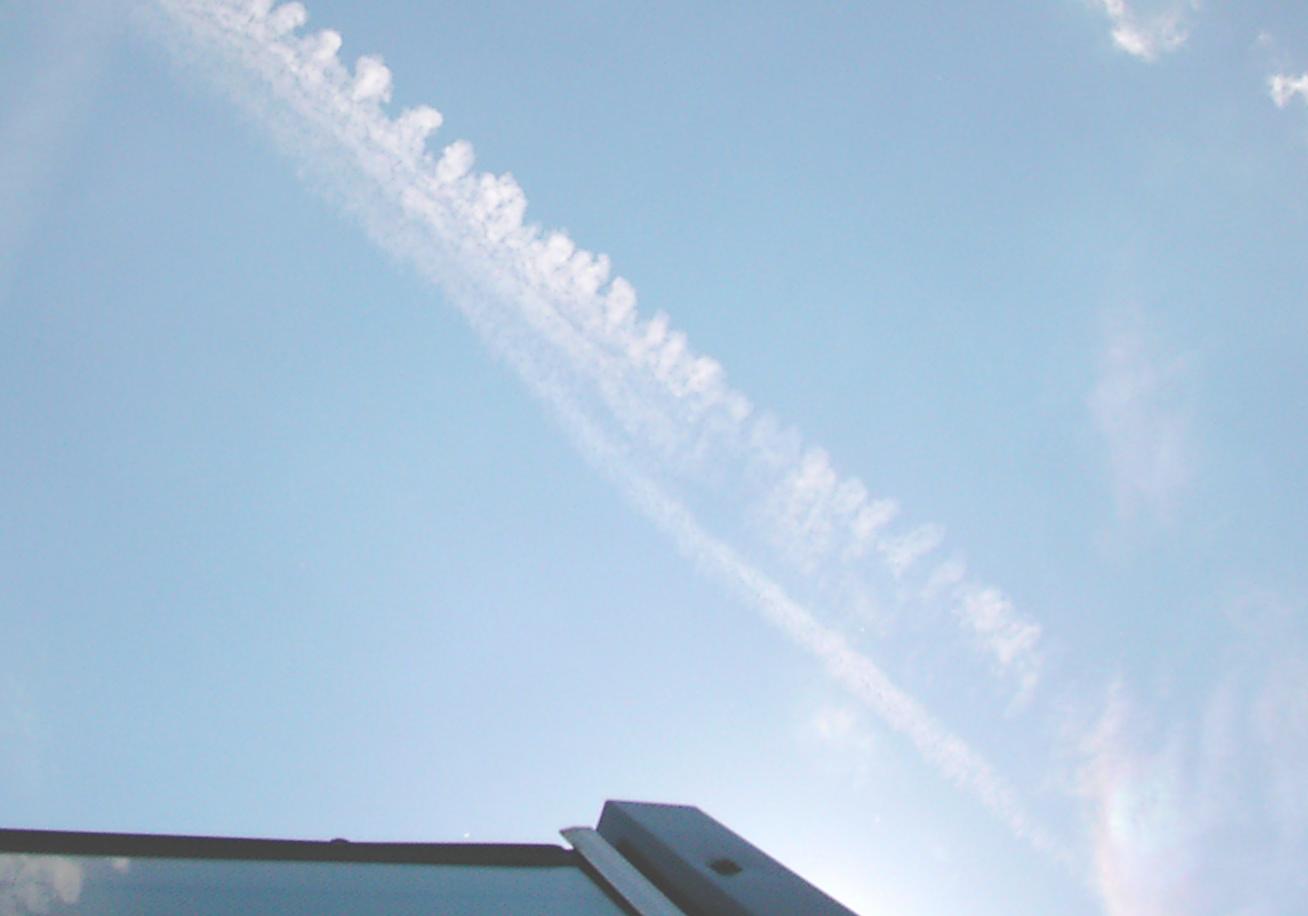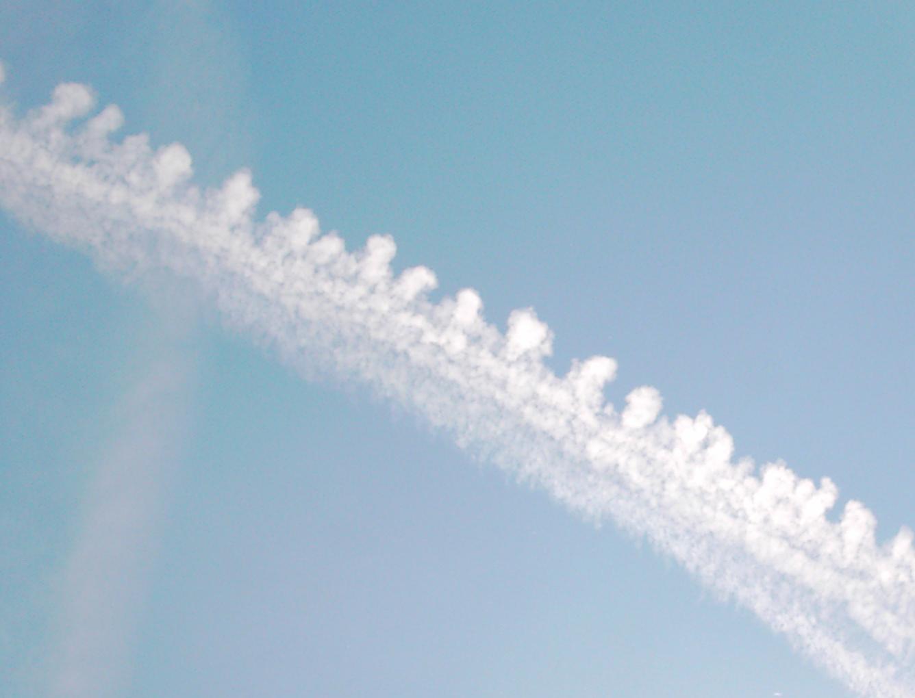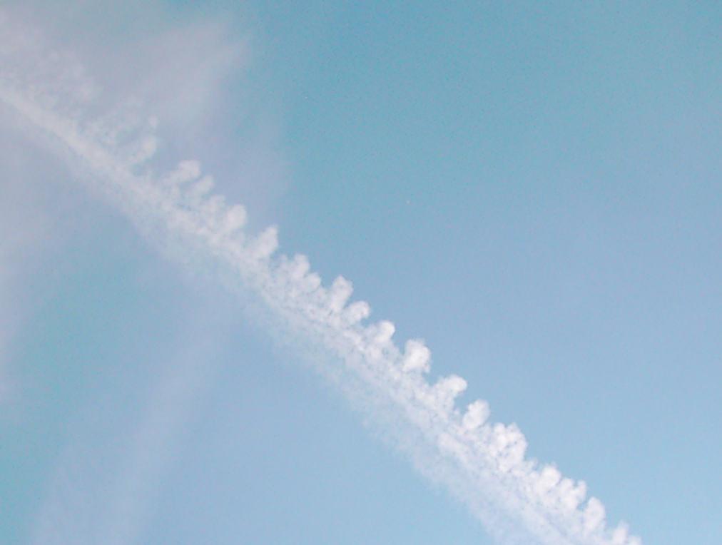 Im Gegensatz zu dieser gänzlichen Strukturauflösung blieben die meisten bisher beobachteten und fotografierten Chemtrailspuren oft noch 1-3 Stunden lang in Chemtrailnebeln erkennbar. (s. Chemtrails-Kennzeichen)