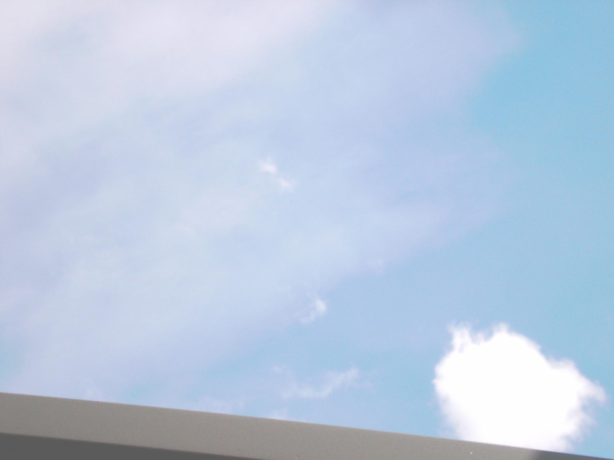Die zunächst pilzartige, sehr deutlich-auffällige Ausblähung des nachfolgend in ganz kurzen zeitl. Abständen fotografierten Chemtrails ging nicht nur erstaunlich rasch (ca. 20 Min.) in einen formlosen grauen Nebel über, der sich mit anderen hellgrauen Chemtrails-Nebeln vereinigte. Es wirkte so, als ob die Chemikalien dieses Chemtrails eine katalytische, zersetzende Wirkung auf natürliche Wolken hätte... Weitere Beobachtungen in dieser Hinsicht sind wohl angebracht.