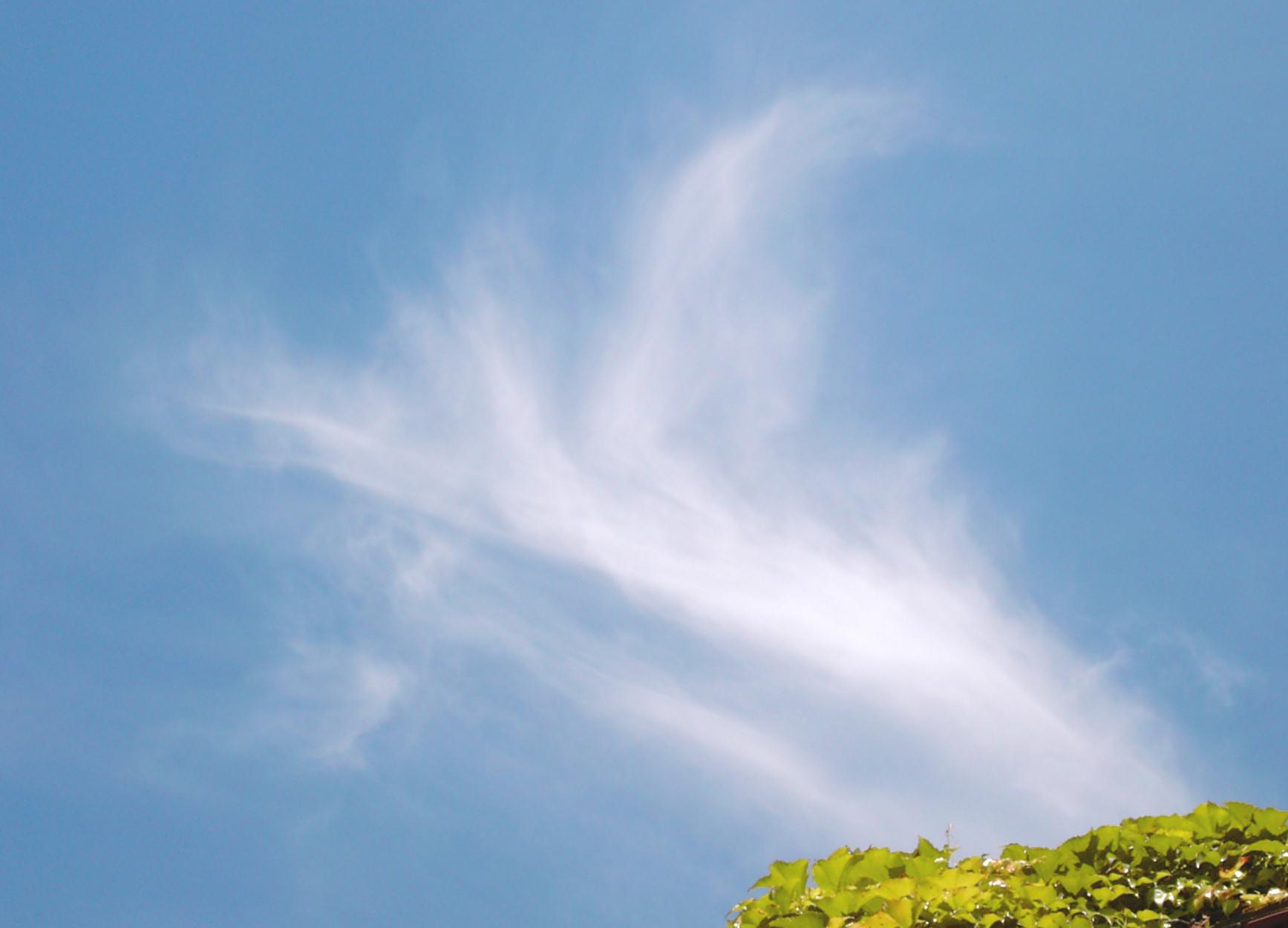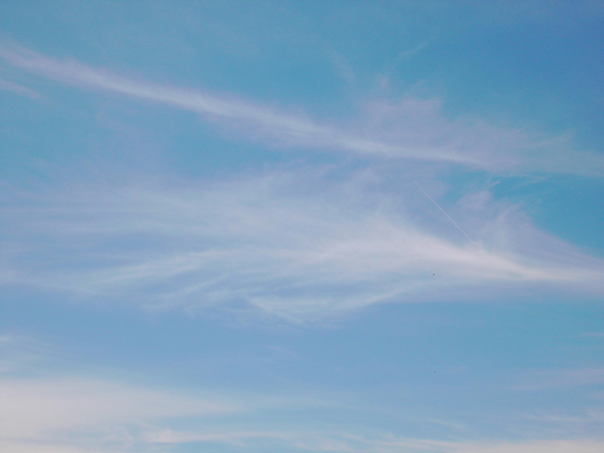 2 Chemtrails in Ausfächerung zu zirrhusartiger Wolke