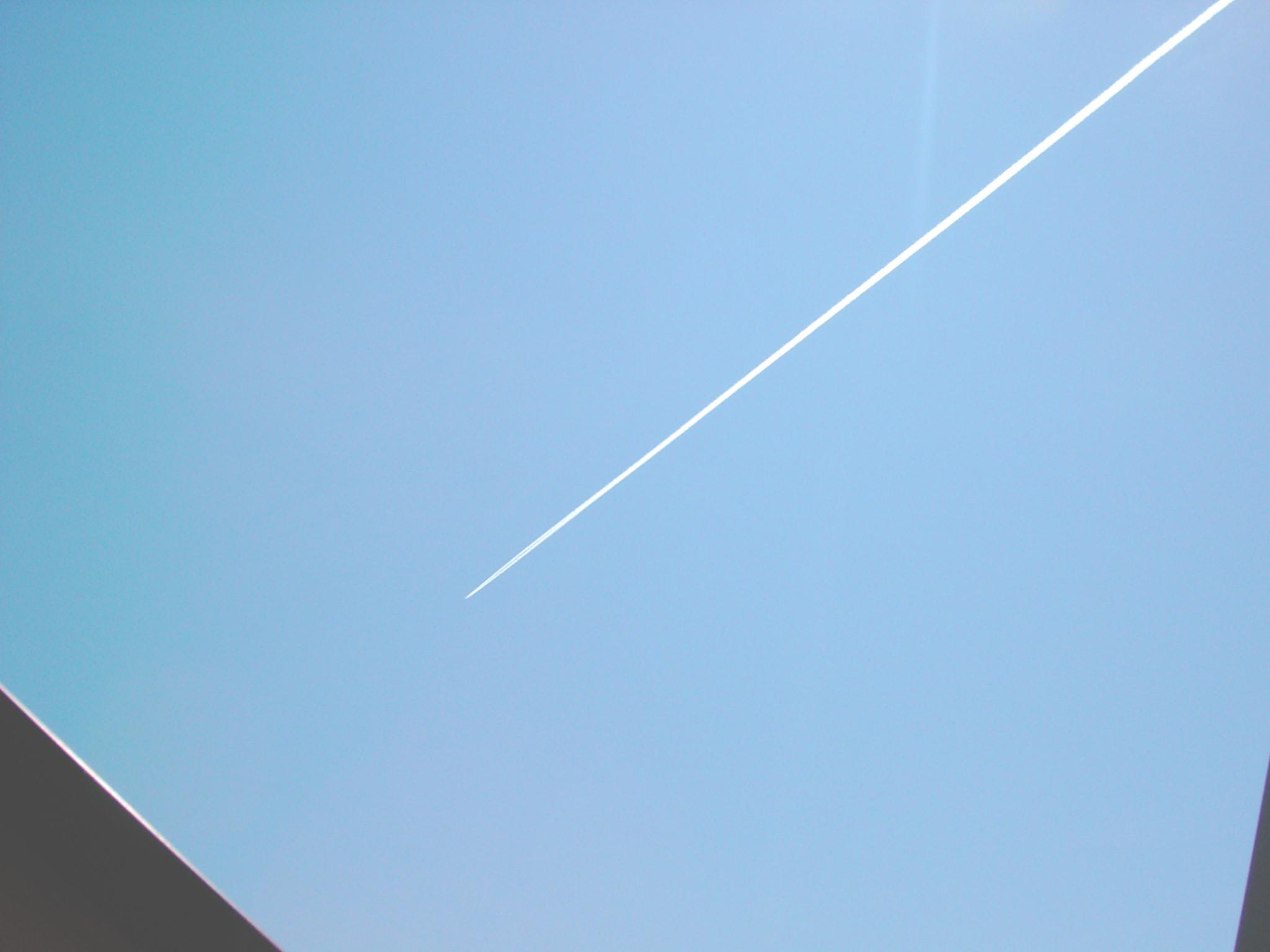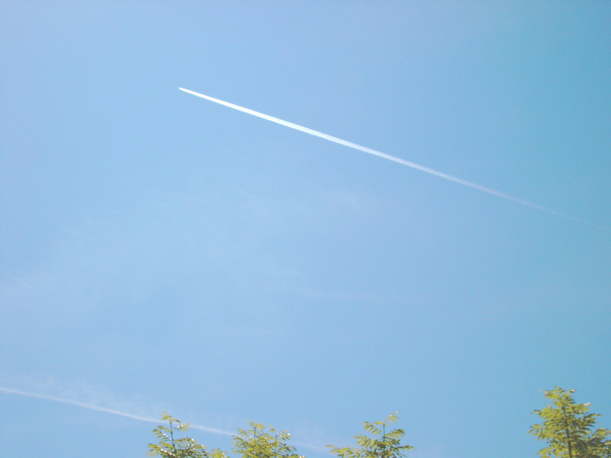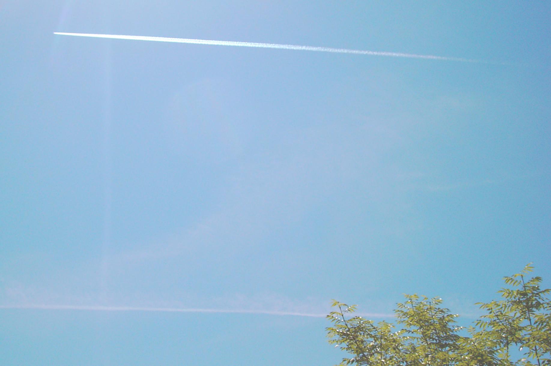 An sich kann jeder objektive Beobachter leicht feststellen, daß sich normale Kondensstreifen (Contrails) fast immer in 1/2 bis 2 Minuten völlig auflösen, während sich künstlich-chemisch erzeugte (Pseudo)Kondensstreifen je nach chem. Beschaffenheit mindestens 20-90 Minuten in auffälliger Weise ausbreiten und dann verschiedene Wolken- oder diffuse Nebelformen hinterlassen. Da dies von offiziellen Stellen gerne geleugnet wird und so getan wird, als ob es überhaupt nur Contrails gäbe, die sich lediglich unterschiedlich langsam auflösen, hier eine Bildserie, die zeigt, daß sich Flugstreifen von 2 Flugzeugen auf ungefähr gleicher Flugbahn sehr unterschiedlich rasch auflösen.