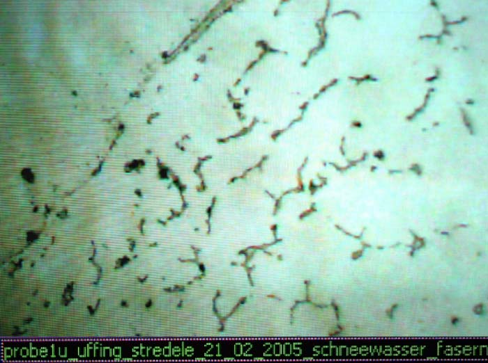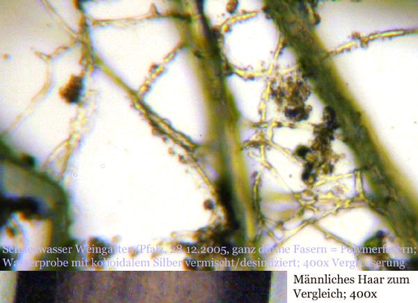 Die Mikroskopuntersuchungen von Schneewasser- und Regenwasser-Proben durch Christian Diebel verdient nicht nur besondere Beachtung, weil sie von verschiedenen deutschen Orten stammen. Wichtiger dürfte sein, daß die fotografieren Polymerbestandteile und kristallartigen Rückstände nach dem Verdampfen der flüssigen Proben wichtige Beiträge zu den Risiken der Feinstaubbestandteilen liefern können.